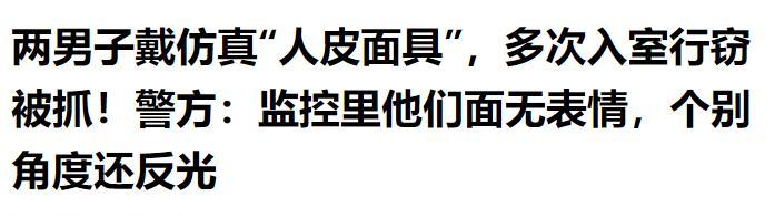 这伙小偷专门挑老百姓家住的地方下手,金银首饰、贵的烟酒,还有现金,啥都不放过,简直就像是要把整个家都搬空一样。警察看监控时发现,有两个男的老在案发地附近晃悠,他们走路都躲着摄像头,走的时候还老换摩托车,搞得神神秘秘的。更奇怪的是,这俩人在监控里看着都没啥表情,脸上还反光。后来才知道,他们脸上戴的是仿真的“人皮面具”,就是为了不让别人认出他们来。