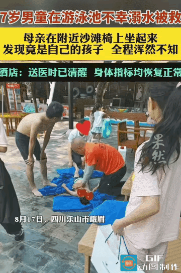 心真大啊!”四川乐山,男童在游泳池不幸溺水,被游客发现后救上了岸,急救过程中,一名女子在沙滩椅上起身看热闹,才发现竟然自己孩子!经过十多分钟的急救,男孩才脱离了生命危险,而母亲对孩子溺水的过程一无所知!网友:这样的怎么配当妈?